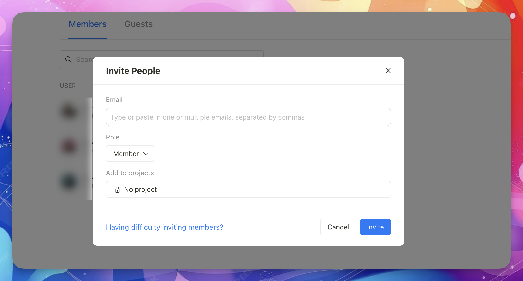 If you didn’t share projects during the invite—or want to add members later—you’ll need to add them to each project manually.