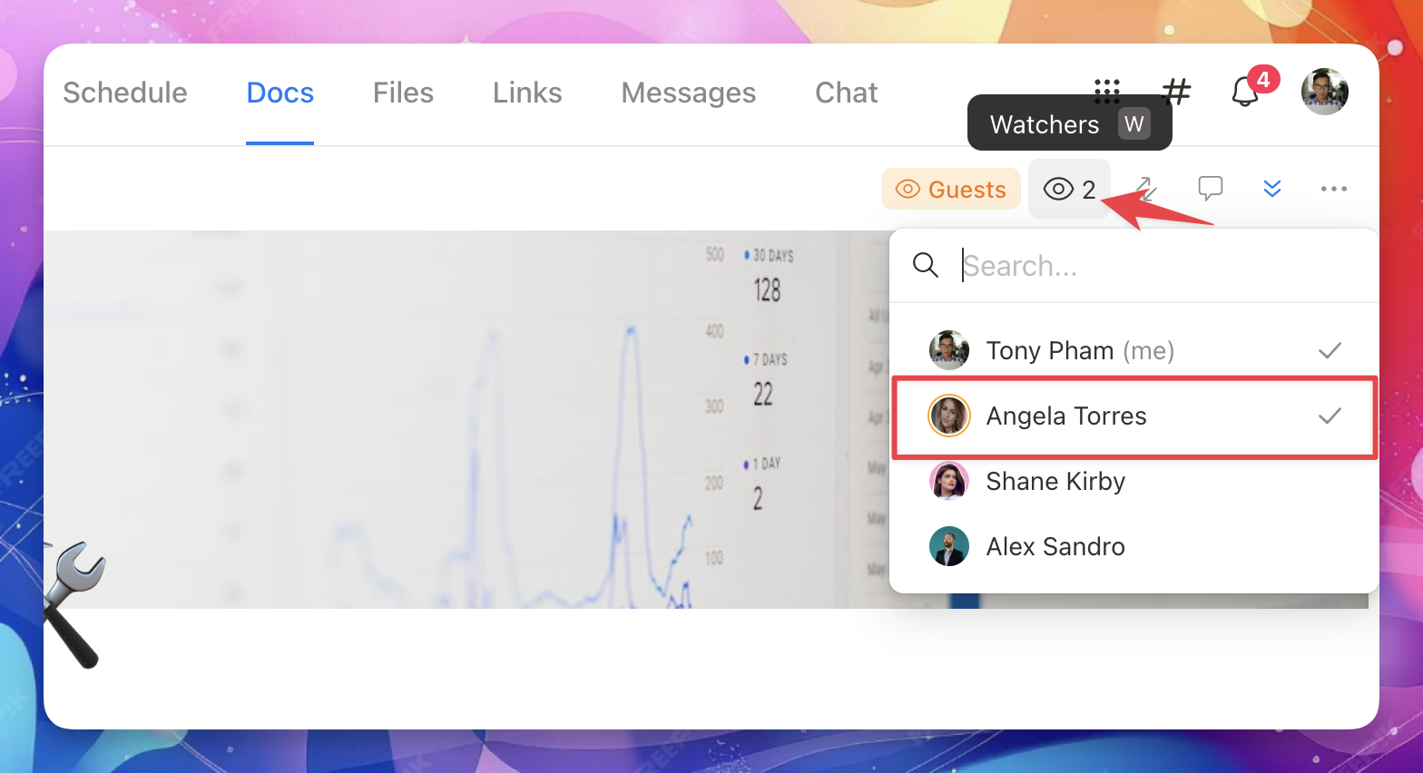 When you want to let someone know about a new task, doc, file, or link, you can add them as a watcher. Watchers receive notifications about that item.