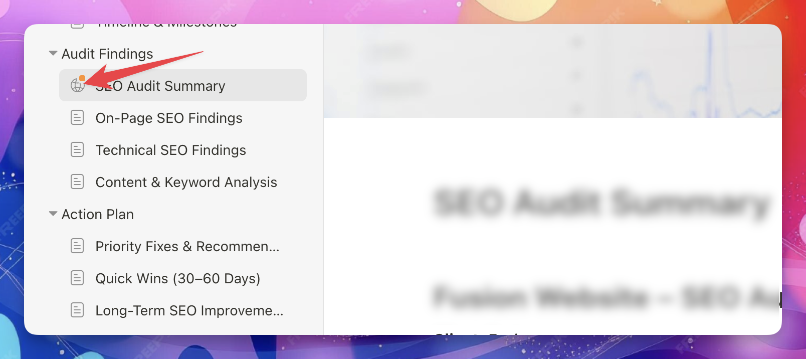 Once shared, the doc icon will change to a globe icon, showing it’s public.