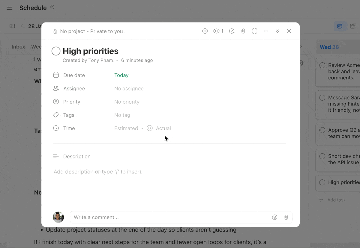 - Turning notes into tasks or subtasks